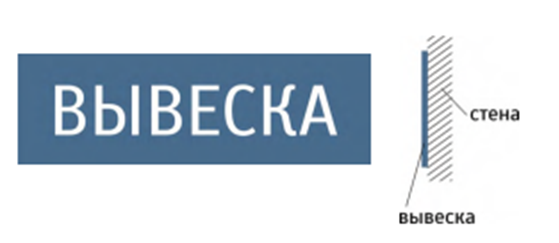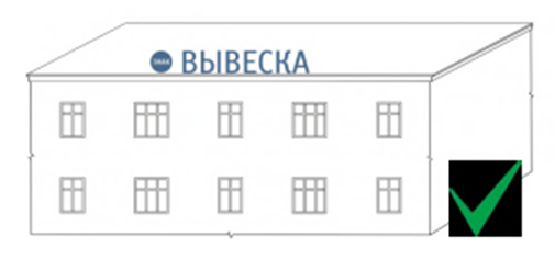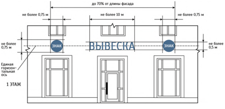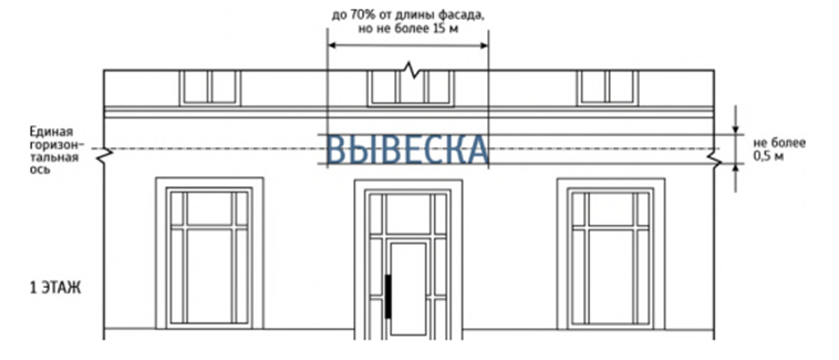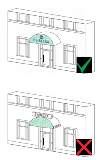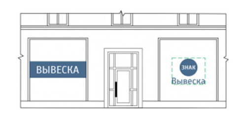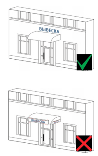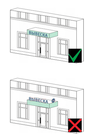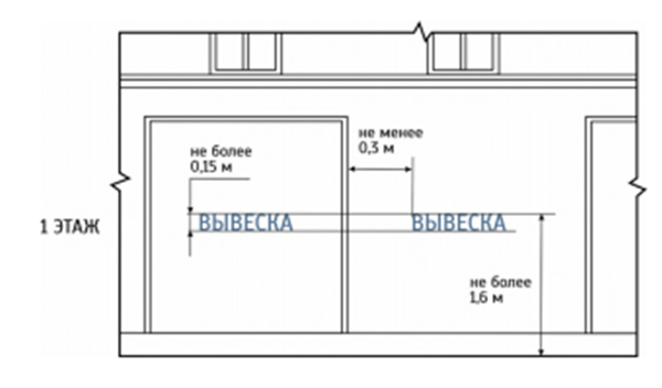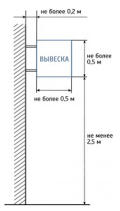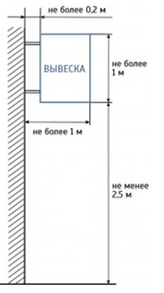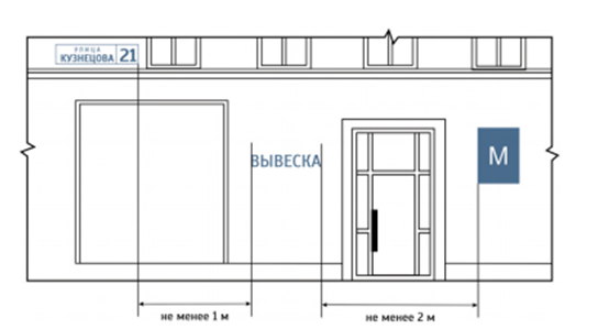 Вывеска должна находится на расстоянии не менее 2 м от мемориальной доски и не менее 1 м от адресных знаков.