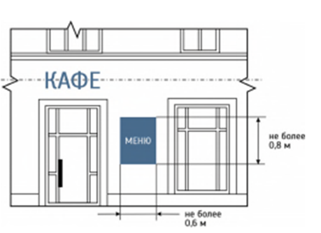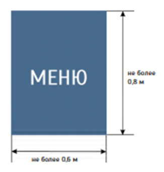 Размеры Меню не должны превышать 0,6 м в ширину и 0,8 м в высоту.