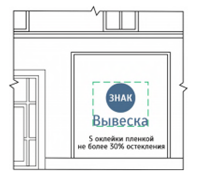 Запрещается окраска и покрытие декоративными плёнками поверхности остекления витрин более 30 процентов площади.